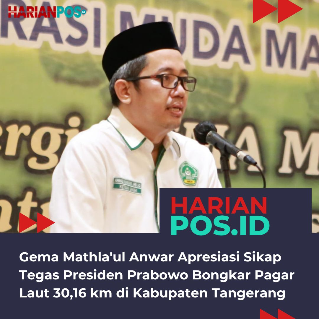 JAKARTA, HARIANPOS.ID – Generasi Muda Mathla’ul Anwar (GEMA Mathla’ul Anwar) melalui Ketua Umum Ahmad Nawawi, mengapresiasi sikap tegas Presiden Prabowo yang menginstruksikan TNI AL melalui Panglima TNI untuk segera membongkar pagar laut yang membentang sepanjang 30,16 KM di sepanjang pantai Kabupaten Tangerang, Banten.
