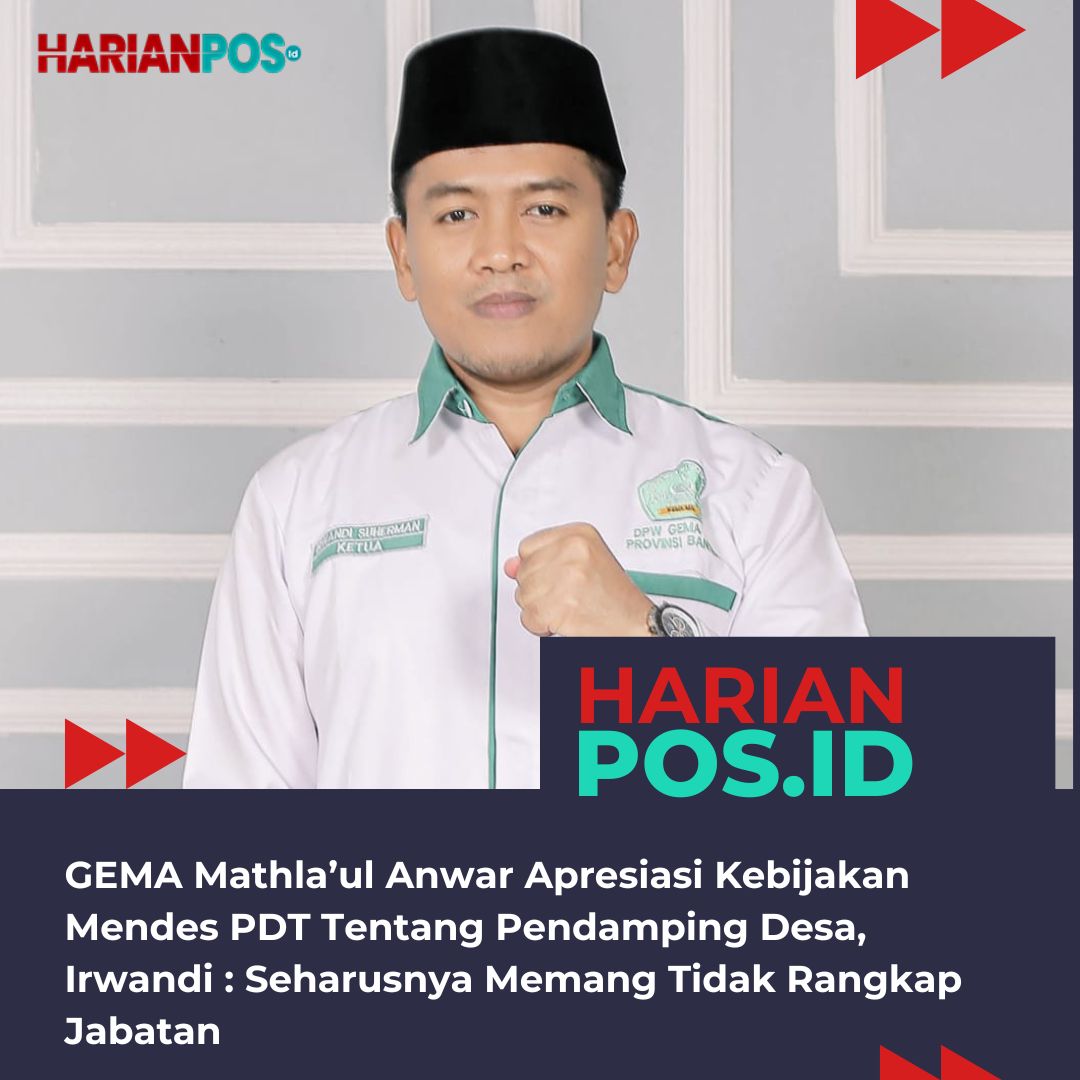 SERANG, HARIANPOS.ID – Dewan Pimpinan Wilayah Generasi Muda Mathla’ul Anwar (DPW GEMA MA) Provinsi Banten mengapresiasi Kebijakan yang diambil oleh Yandri Susanto selaku Menteri Desa dan Pembangunan Daerah Tertinggal tentang Pendamping Desa yang dilarang rangkap jabatan dan diperintahkan fokus pada pekerjaan pokoknya membangun desa. hal tersebut disampaikan ketua GEMA MA apoteker Irwandi seusai tarawih bersama di Masjid Ats Tsauroh Kota serang, Jumat (7/3/2025).